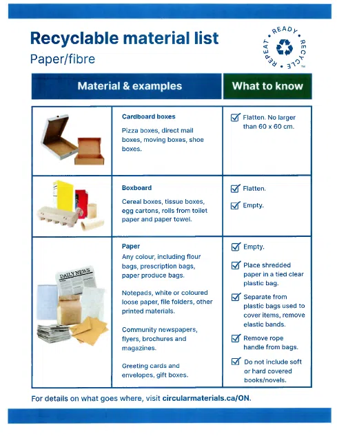- Place containers (plastic/ glass) in one blue bin or bag, place paper, cardboard in one bag or blue bin.